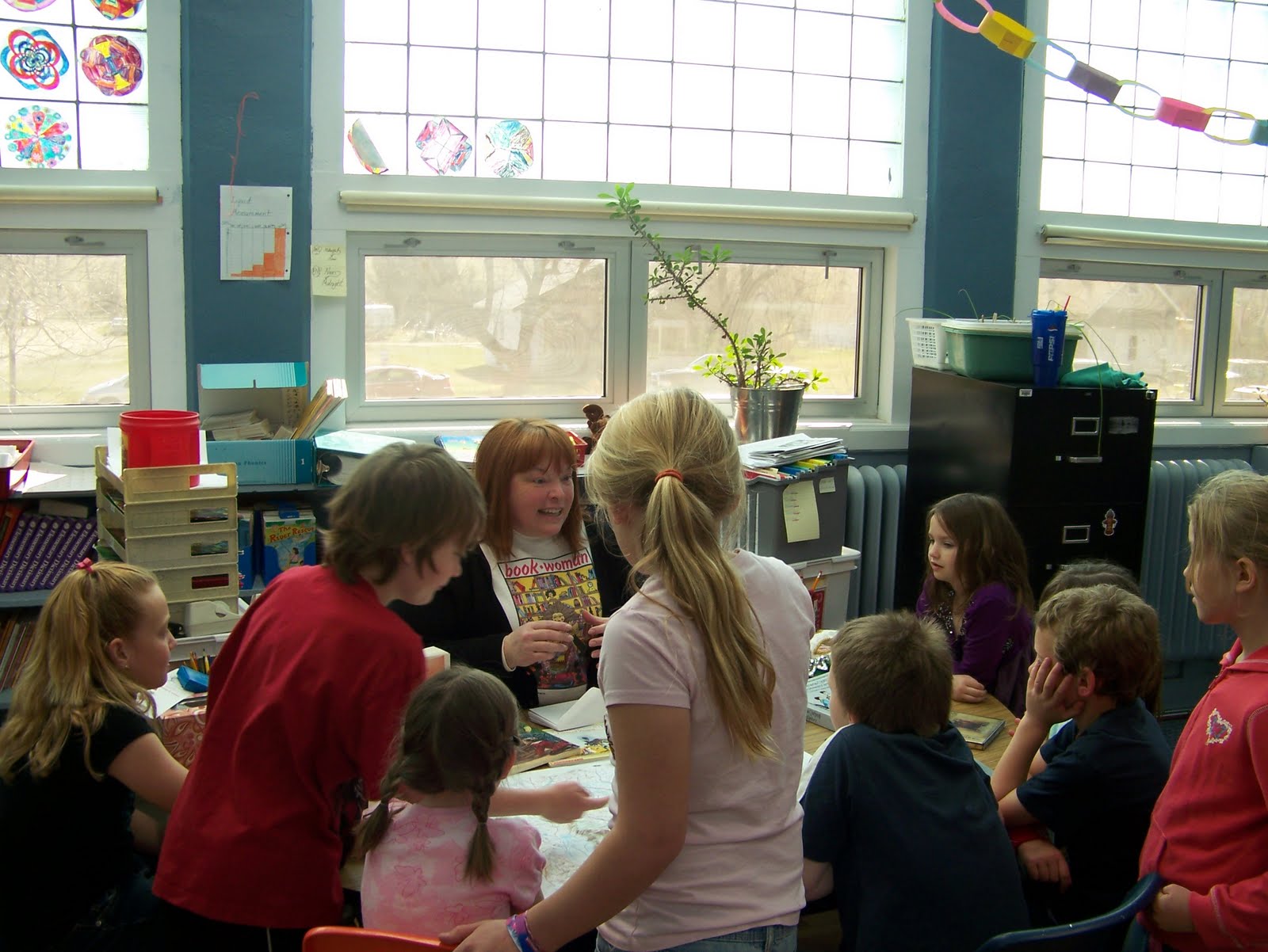 A friend from church asked my husband and I to come to her classroom and share what we do regarding writing. Considering we had eight inches of snow two days ago, I was somewhat concerned, but as you can see the picture above – it was a gloriously beautiful day and much of the snow was already gone.